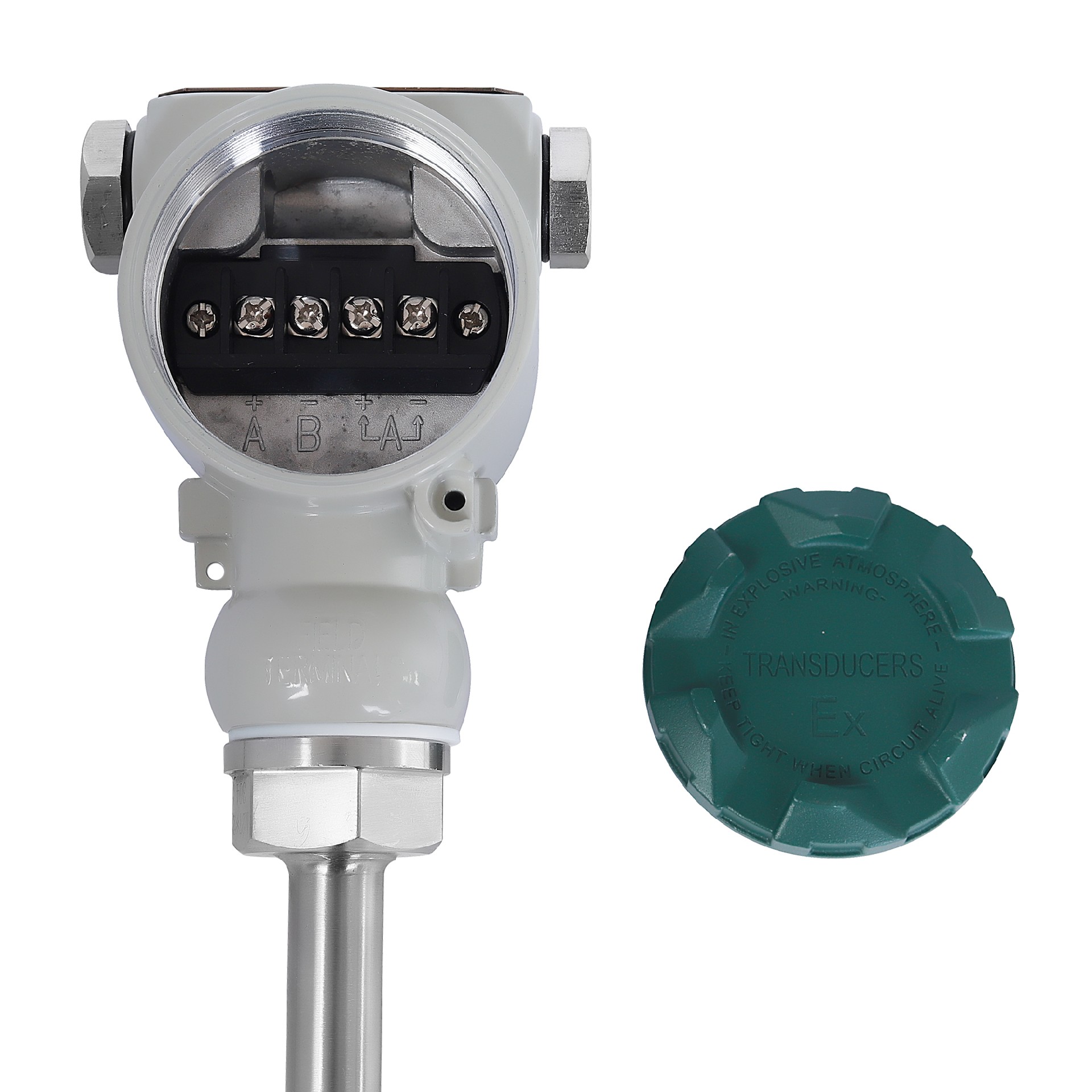 溫度變送器是pt 100傳感器在溫度影響下產(chǎn)生電阻效應(yīng),經(jīng)專(zhuān)用處理單元轉(zhuǎn)換產(chǎn)生一個(gè)差動(dòng)電壓信號(hào),此信號(hào)經(jīng)專(zhuān)用放大器,將量程相對(duì)應(yīng)的信號(hào)轉(zhuǎn)化成標(biāo)準(zhǔn)模擬或數(shù)字信號(hào)。